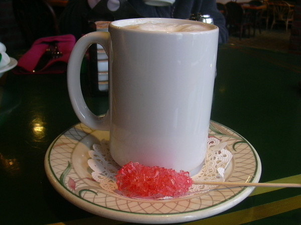 紅色的晶糖融在Cappuccino 的白色泡沫中, 分外好看