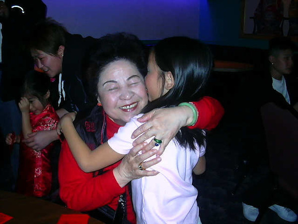 每個小孩除了要說新年快樂跟恭喜發財外,還要一一跟發紅包的人抱一下,